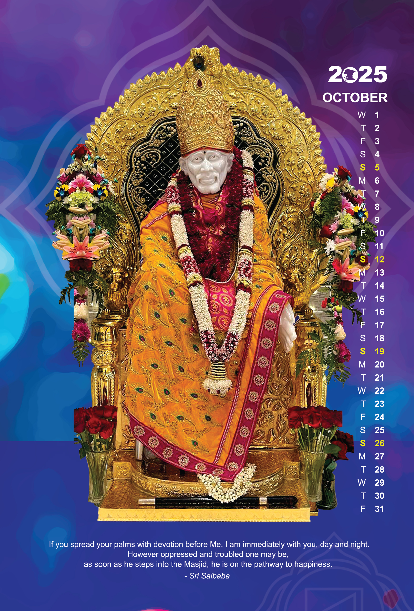 1-Wed: Sri Saibaba Mahasamadhi-Sai Sahasranama Homam @ 10:30 AM