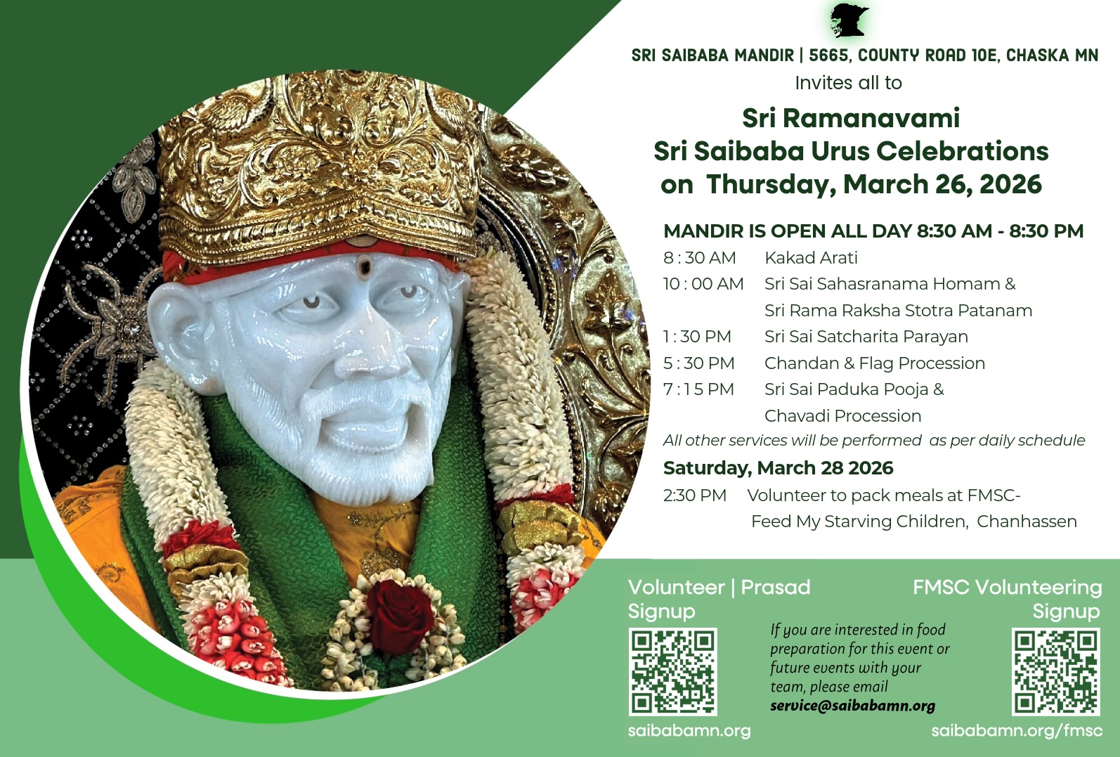 Please do talk with the volunteers or contact us at (612) 900 5663 | Service@Saibabamn.org if you have any questions.